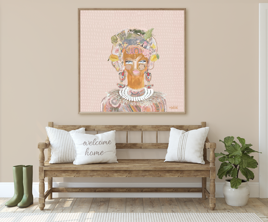 Jungle Frida (Pink Blue) (Square) Canvas Print