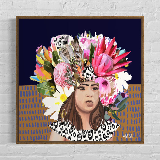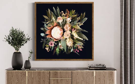 Frida Bloom Canvas Print (Back ground colour #000718)